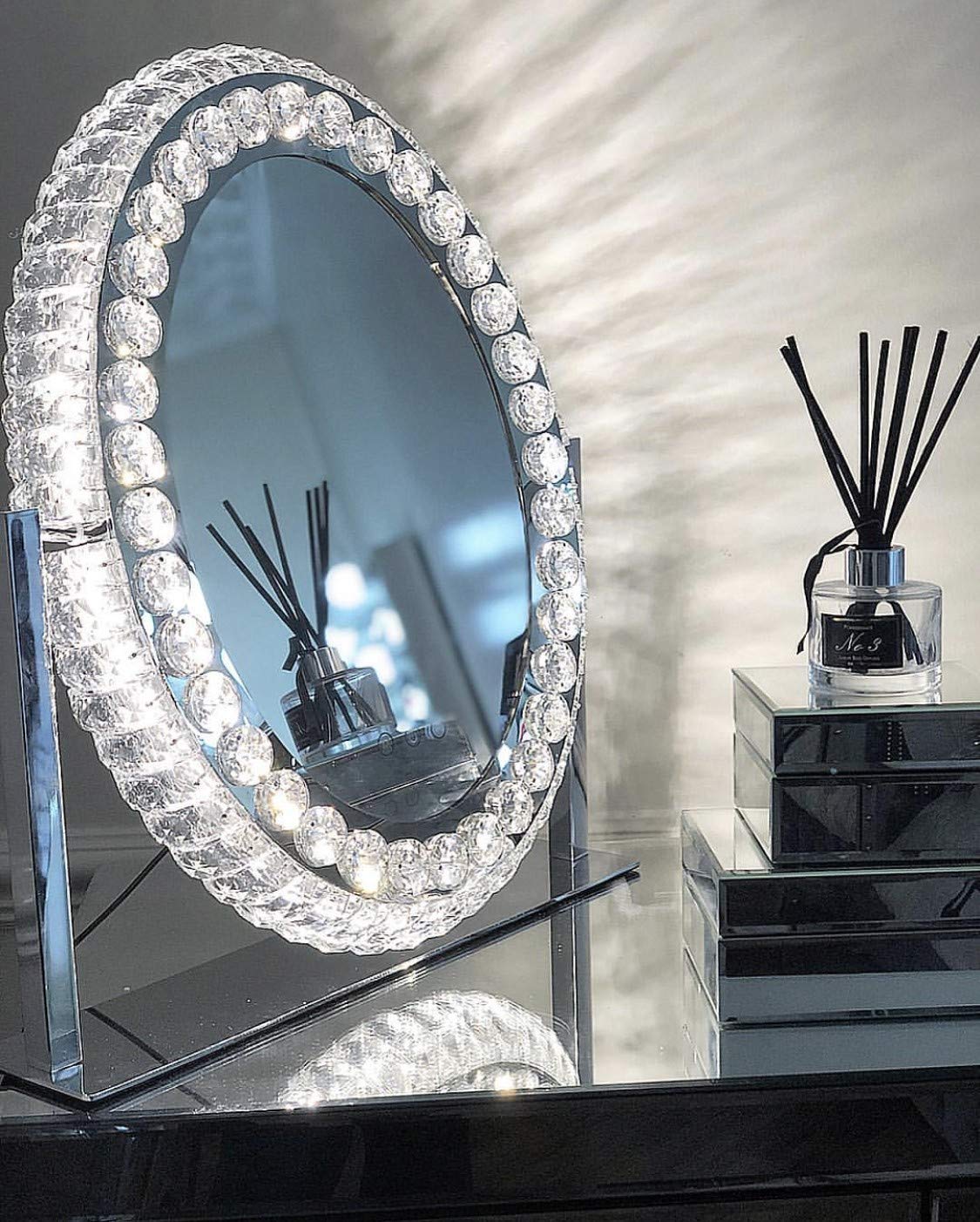 niches hollywood makeup mirror oval decorative crystal dimmable 3 settings vanity hollywood led mirror home accessories home kitchen cate org