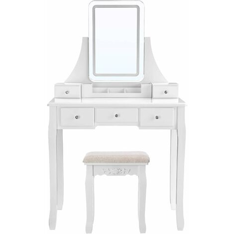 vasagle modern dressing table with frameless mirror removable organiser rubber wood stool 5 drawers for bedroom