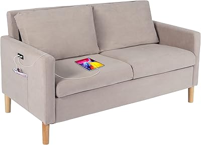 amazon com hfg 55inch modern fabric love seats sofa with 2 usb suitable for small spaces soft pillows easy to install light grey kitchen dining