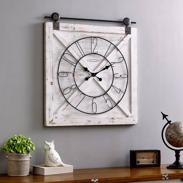 firstime co 29 in x 27 in farmstead barn door clock 31080 the home depot