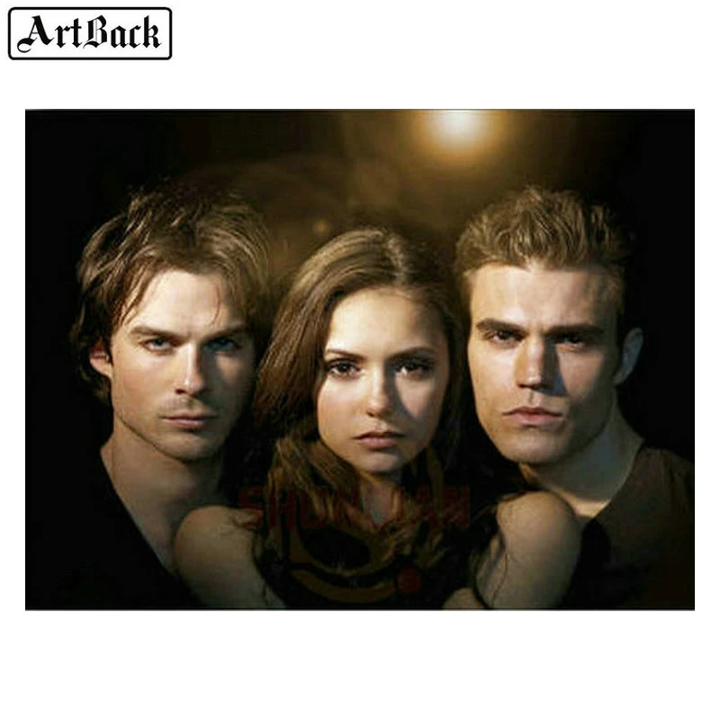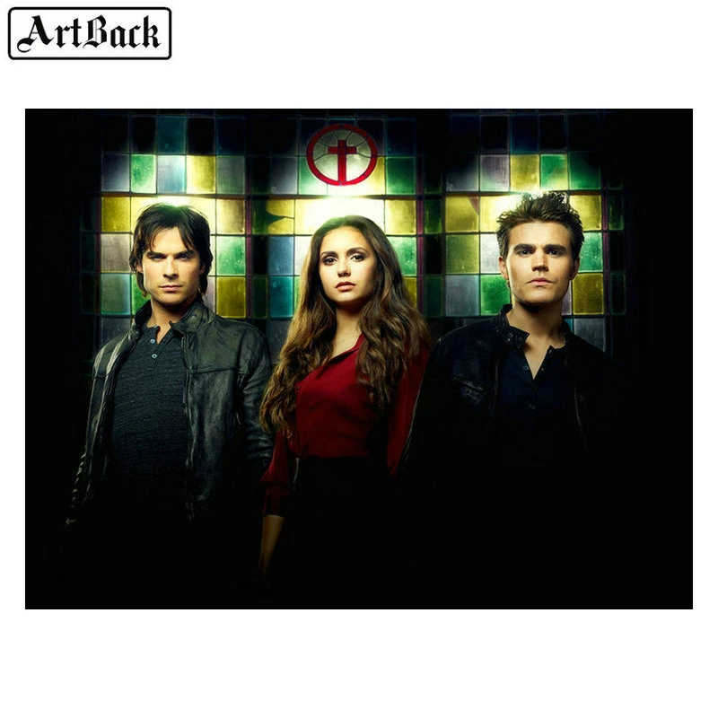 50x65cm diamond painting the vampire diaries full square damon stefan elena 5d round diamond art zombie cross embroidery crafts diamond painting cross stitch aliexpress