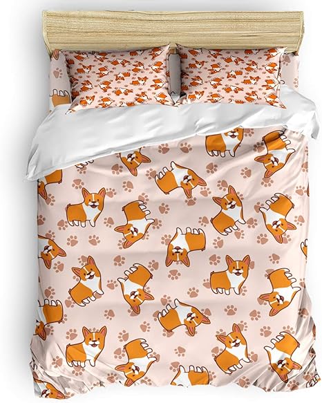 amazon com bedding 3 piece kids duvet cover sets bed sheet set corgi anime puppy corgi for dog lover owner comforter cover set with zipper closure include 1 duvet cover 1 bed sheets 2 pillow cases