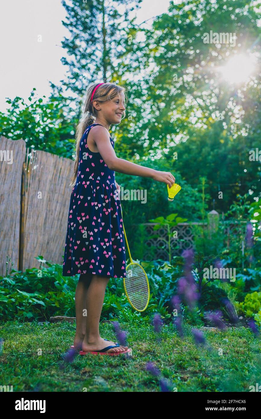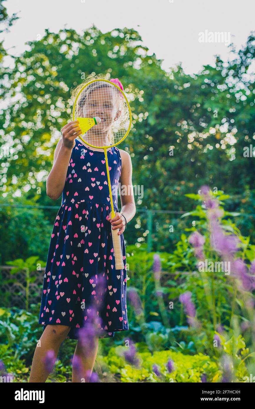 teen girl playing badminton stock photo alamy
