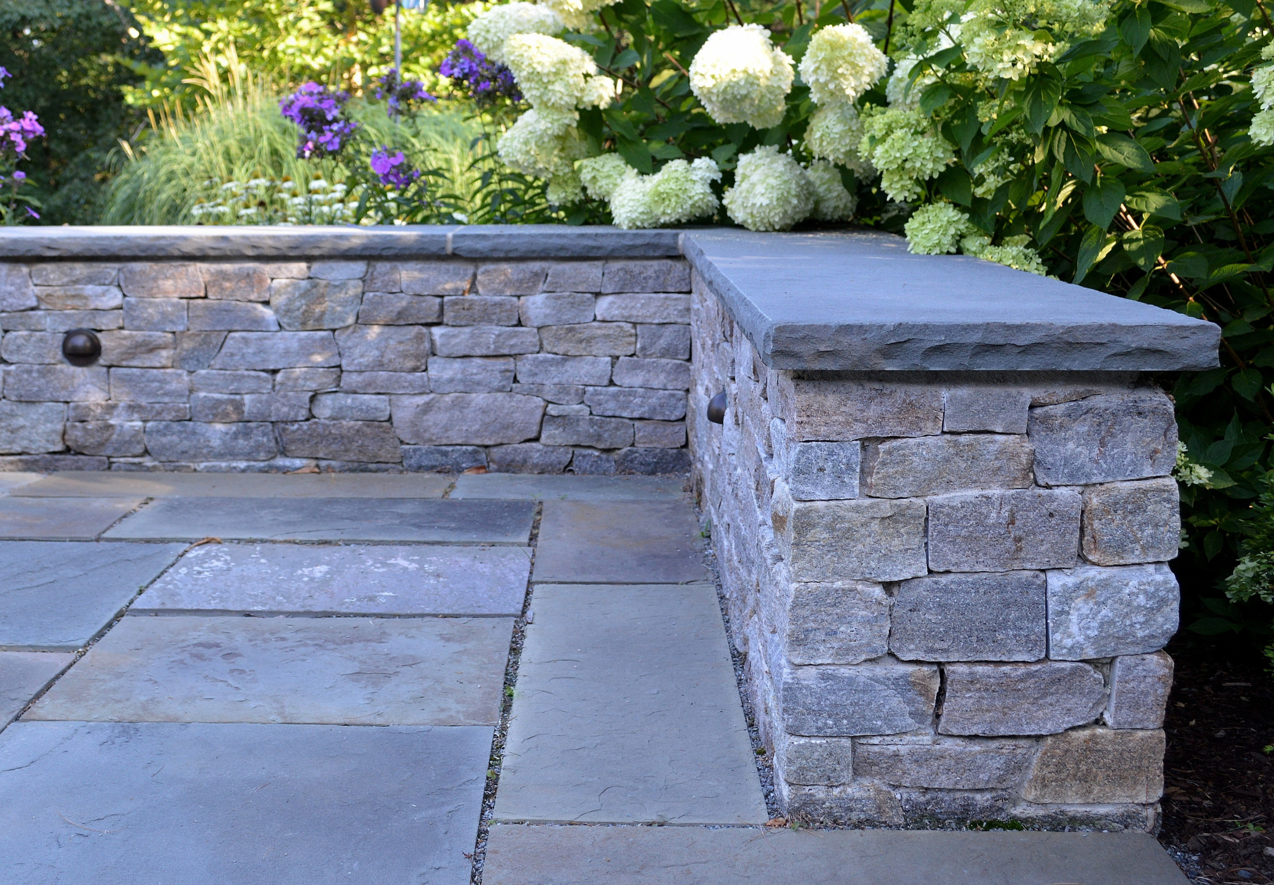 new england fieldstone veneer stone seat wall with bluestone cap traditional landscape boston by sallie hill design landscape architect houzz