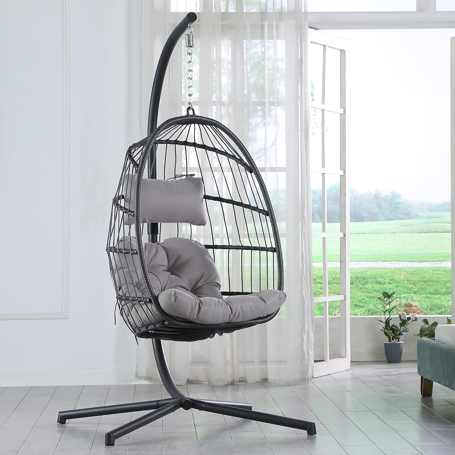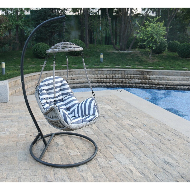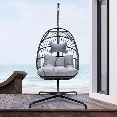 amazon com brafab swing egg chair hammock chair hanging chair aluminum frame and uv resistant cushion with steel stand for indoor outdoor patio porch bedroom wicker rattan hand made chair 350lbs capacity garden