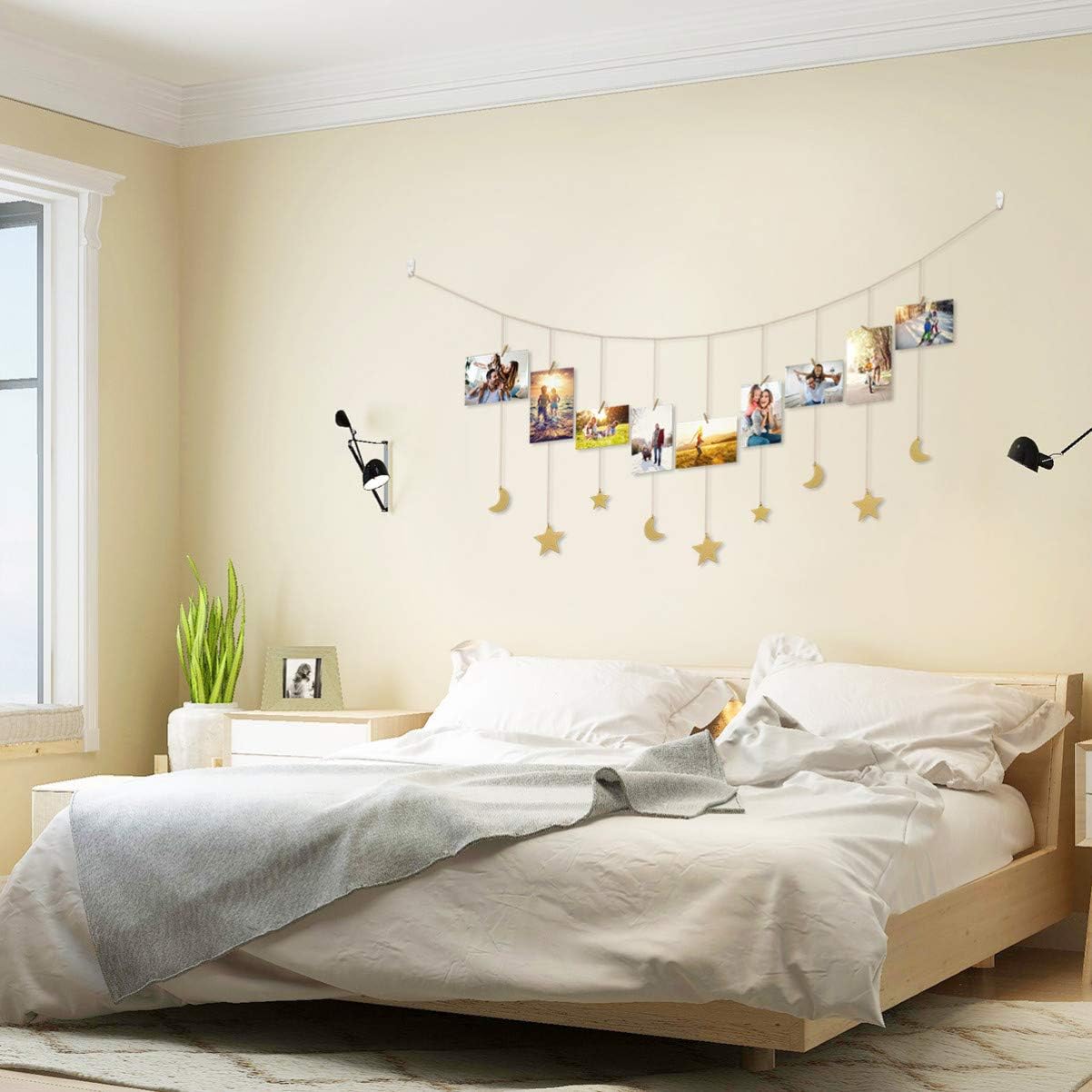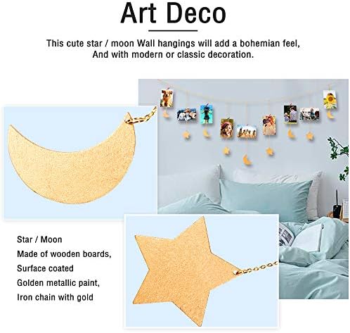 home kitchen diy picture frame collage wall art decoration winomo 1 pc hanging photo display chain stars and moons hanging photo display string with 30 wood clips home decor