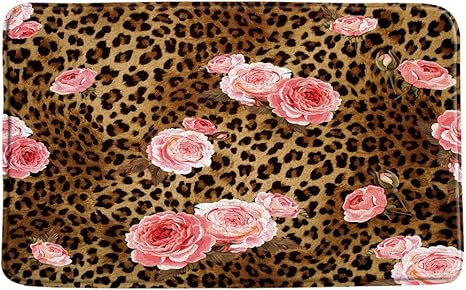 amazon com leopard flower bath mat brown leopard print mix pink rose flower creative modern bathroom microfiber memory foam bathroom decor rug non slip absorbent doormat kitchen toilet floor rug 19 7 x 31 5
