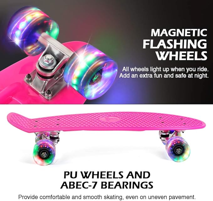ychch bambini cruiser skateboard 22 pollici completo di plastica mini penny deck bordo del pattino con 4 morbido pu ruote per adulti principianti ragazzi delle ragazze della gioventu skateboard sport e tempo