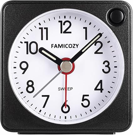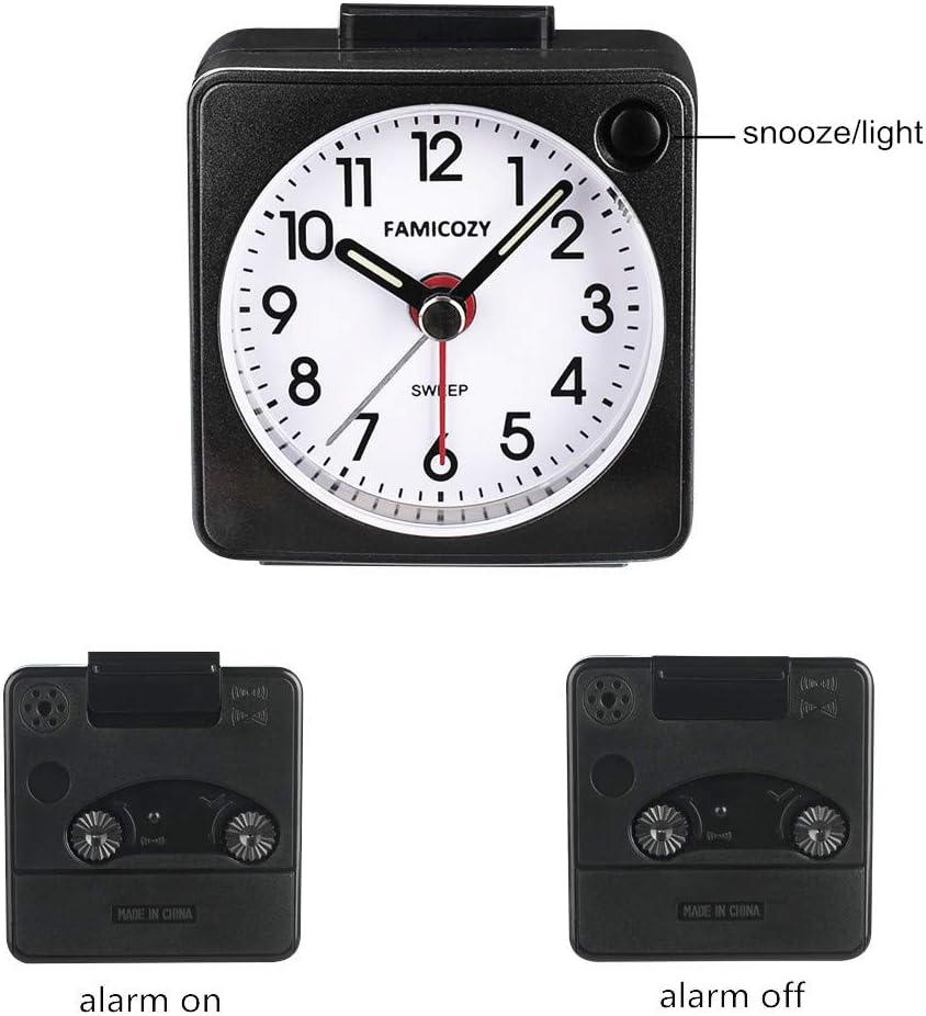 famicozy mini size alarm clock quiet non ticking travel alarm clock with snooze and nightlight gradually increasing in volume lightweight analog quartz clock battery operated black amazon co uk home kitchen