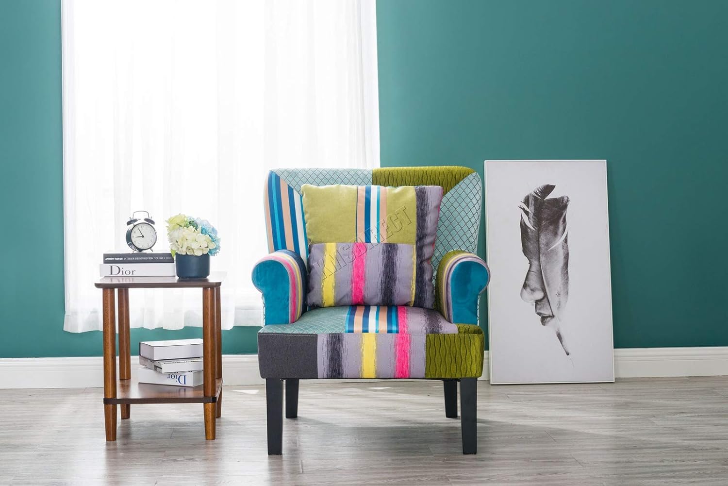 modeno design colored patchwork armchair in fabric and wood