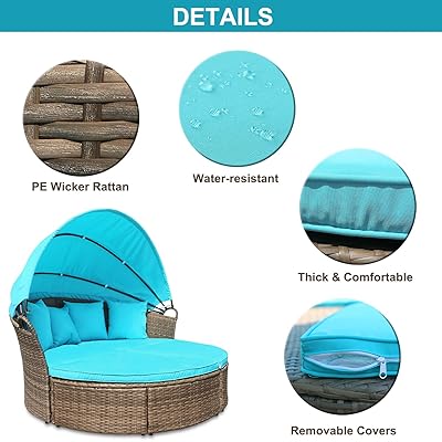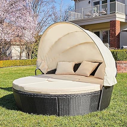 buy m w patio furniture round outdoor daybed with retractable canopy and soft cushions pe wicker rattan sectional sofa set for lawn garden backyard pool online in indonesia b07ggwnw56