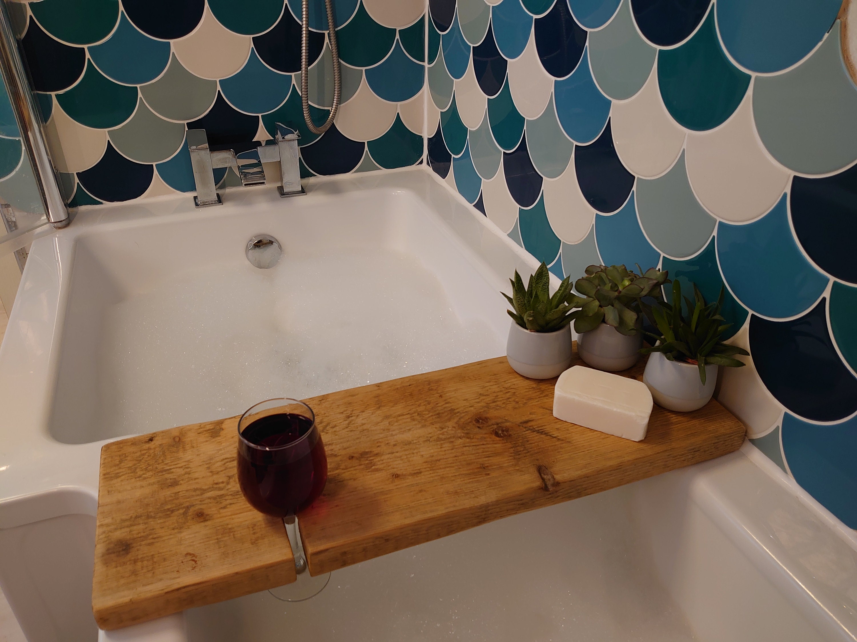 wooden bath caddy tray with wine holder live edge solid etsy in 2021 bath tray wooden bath bath caddy