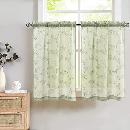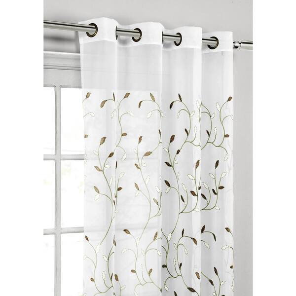 window elements sage leaf embroidered grommet sheer curtain 54 in w x 84 in l ymc001211 the home depot