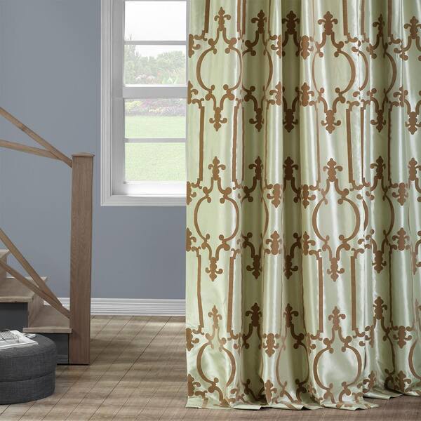 exclusive fabrics furnishings royal gate sage green and amber flocked faux silk curtain 50 in w x 96 in l ptfflk c32c 96 the home depot