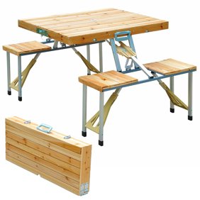 outsunny portable foldable camping picnic table with seats chairs and umbrella hole 4 person fold up travel picnic table wood walmart com walmart com