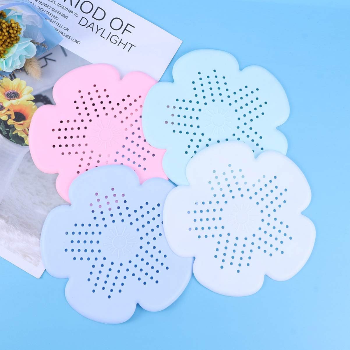 healifty 4pcs shower drain kitchen sink strainer floor drain removable flower shape shower drain covers hair strainer for bathroom drain protectors home kitchen cate org
