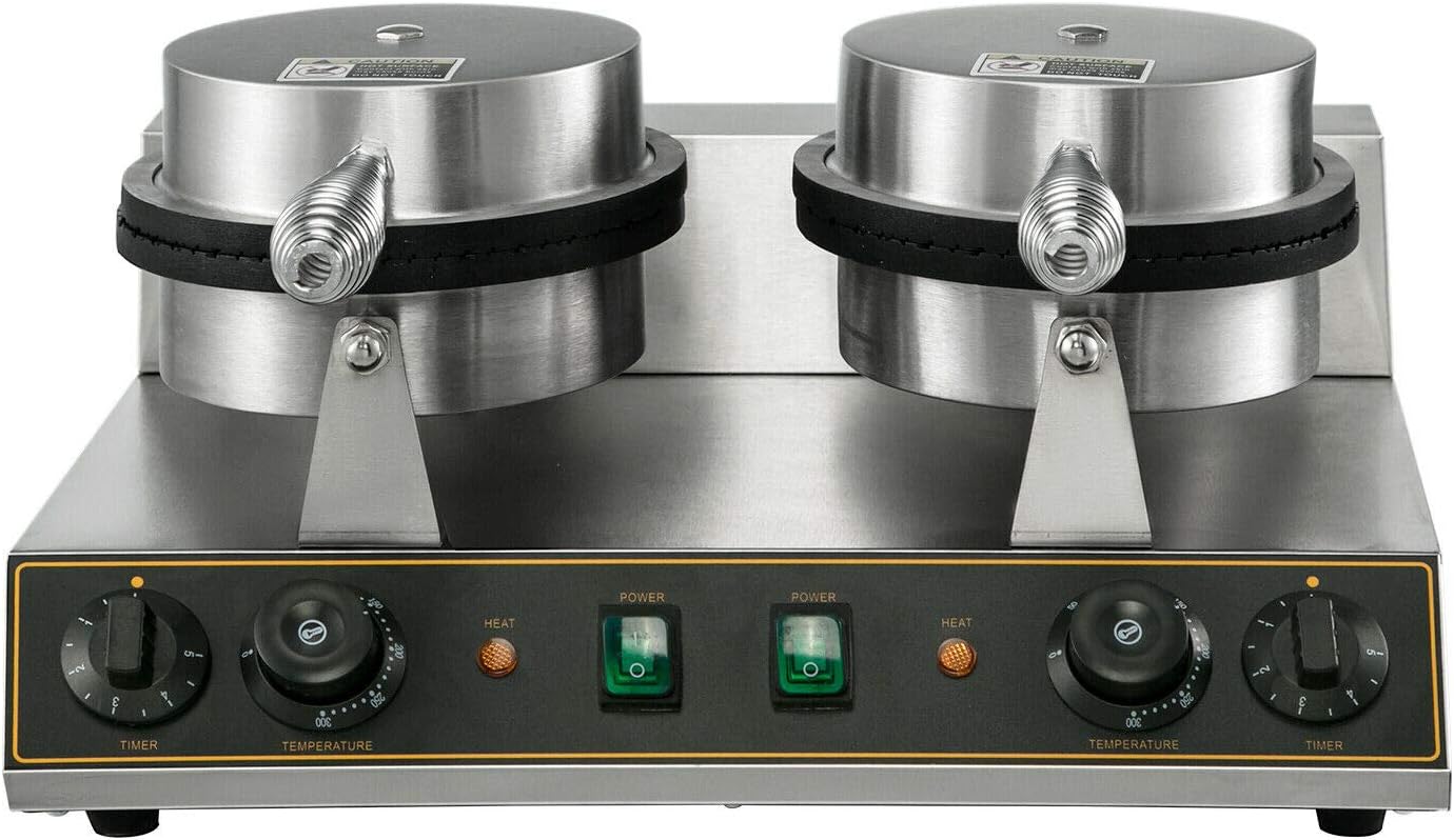 buoqua commercial rotated double head round waffle maker nonstick electric rotating egg waffle maker machine stainless steel temperature and time control belgian waffle maker kitchen home appliances home kitchen cate org