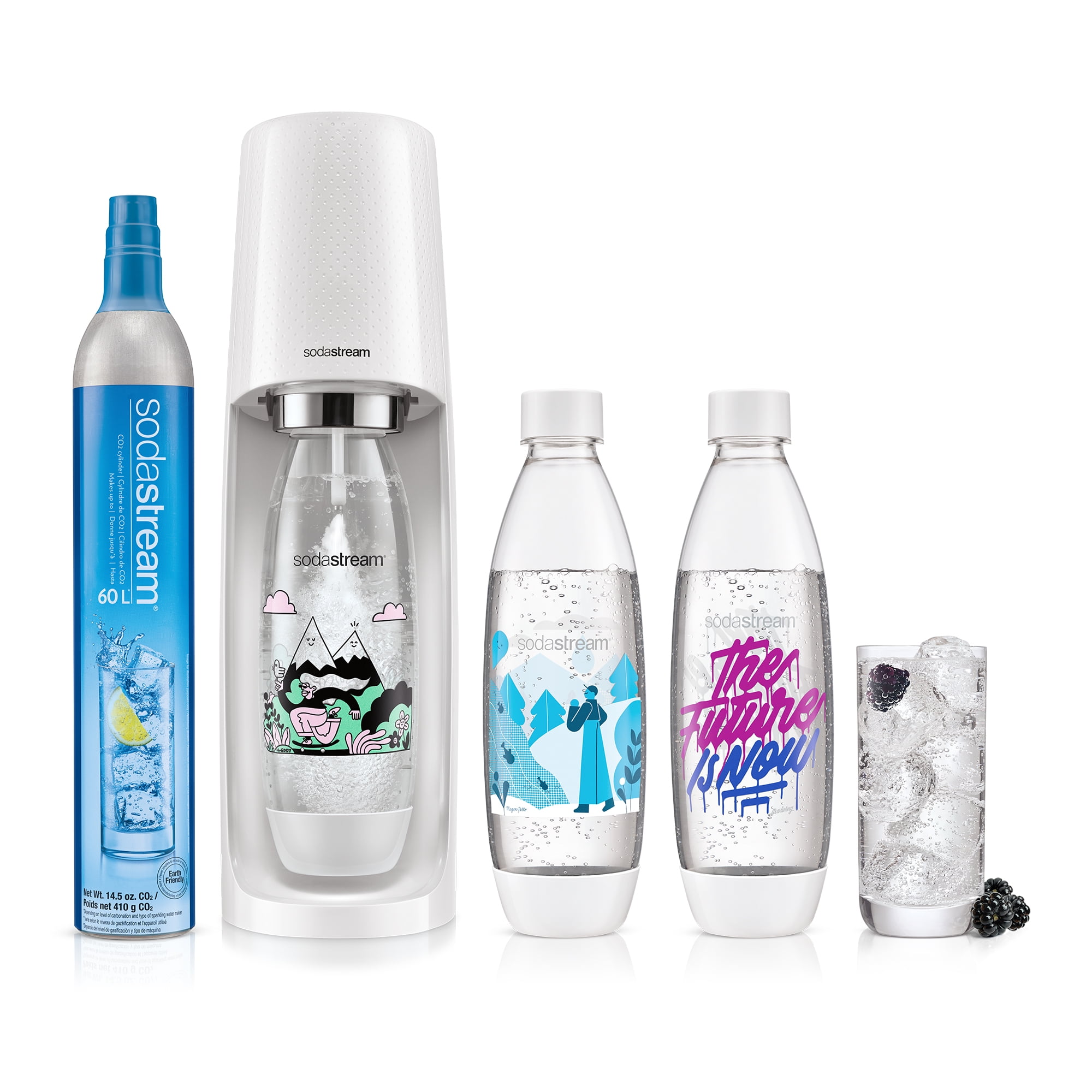 sodastream x bubly fizzi sparkling water maker bundle icy blue with co2 bpa free bottles and bubly drops flavors walmart com walmart com