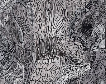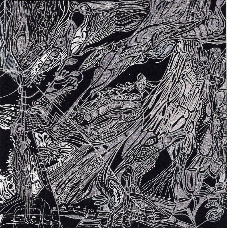 black strathmore artist tile one of a kind abstract pattern art evoke the cells original white and silver ink art drawing on 6 x 6 in pen ink art collectibles