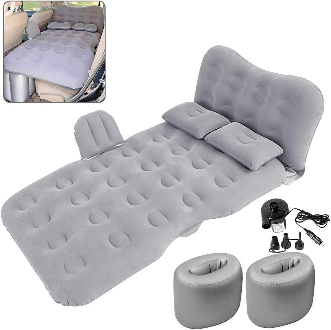 amazon com car air mattress for back seat half trunk thickened inflatable camping bed with two air pillow and electric car air pump double side design with flocking pvc for multi scene