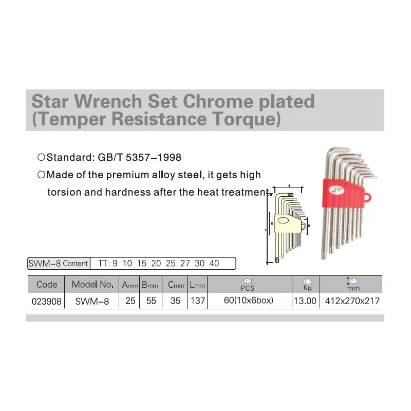 hohxen torx ball key spanner set 9 piece t10 t15 t20 t25 t27 t30 t40 t45 t50 long arm tamper proof star screwdriver torque repair spanner tool set l shape power garden hand