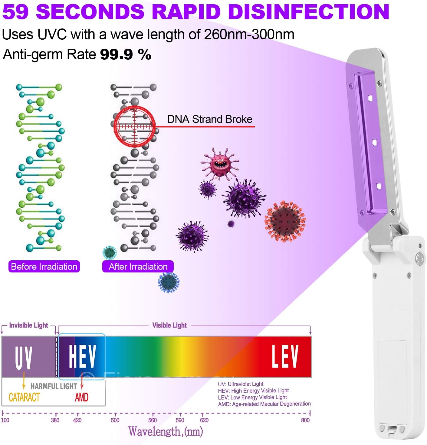 etrobot uv light sanitizer portable uv c sterilizer light wand ultraviolet disinfection lamp 7w usb charge sanitizin ultra violet uv light disinfect