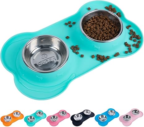 pet supplies super design double bowl pet feeder stainless steel food water bowls with no spill silicone mat for dogs cats small light green amazon com