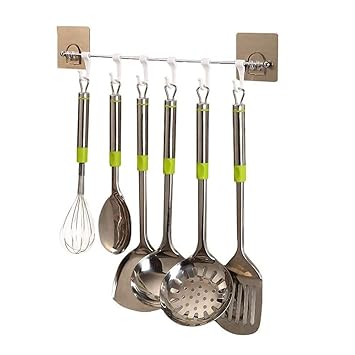getko with device self adhesive stainless steel wall hanging 6 hook rack for bathroom kitchen towel multi hanger bedroom clothing hanger silver amazon in home kitchen