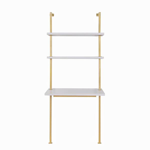 nathan james theo 73 in white wood and gold brass metal 2 shelf wall mount ladder writing desk table small computer table bookcase 66002 the home depot