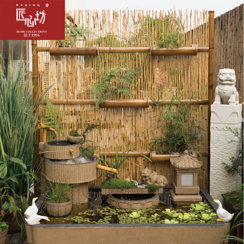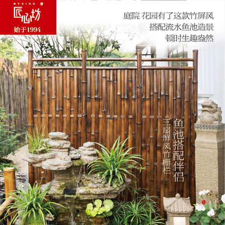 craftsmanship courtyard landscape decoration three bamboo screens outdoor terrace garden bamboo fence fish pond landscaping matching